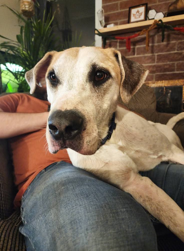 I’m a 2 year old Great Dane mix with a heart (and paws) as big as my smile. I’m basically a giant goofball who loves to play, snuggle, and follow my favorite humans wherever they go. I take “velcro dog” to a whole new level, if you move, I’m coming too!