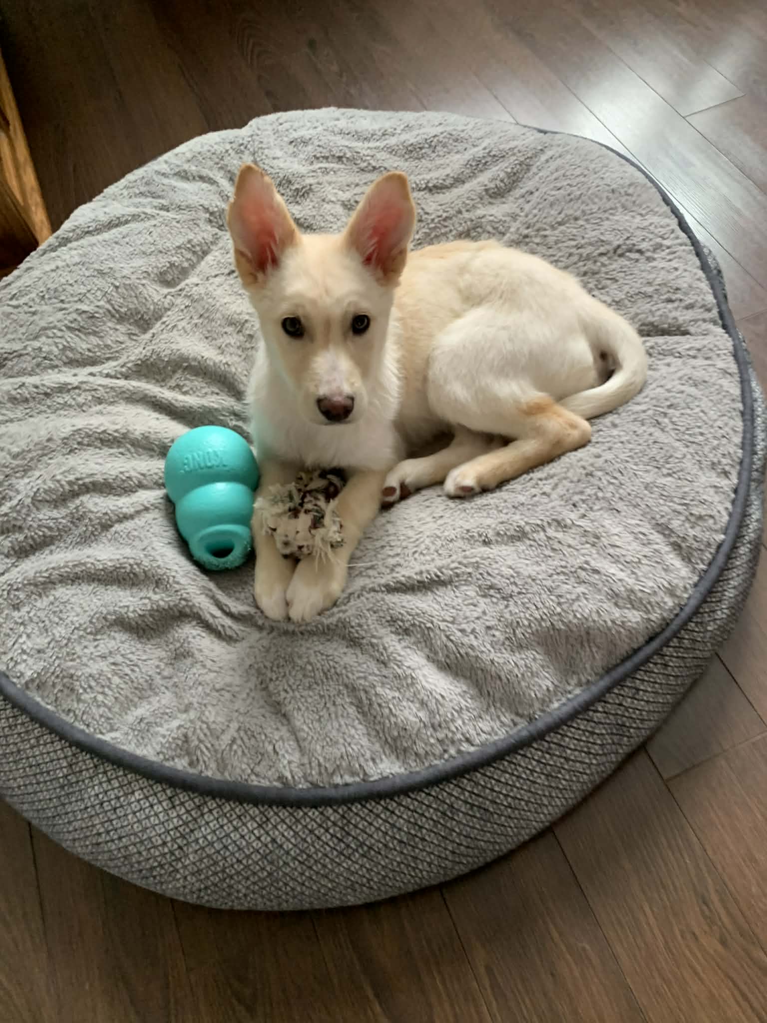 Hi, I’m Luca! I love to play, whether with my foster siblings, humans, or by myself. Sometimes I have a lot of energy, but lots of the time I love to nap and even more, I love to snuggle up close. I am a loyal boy and I love to be wherever the humans are. I sleep in my kennel all night now! Sometimes I am a vocal boy if I spend time in my kennel during the day, I am a husky after all, but I eventually settle. I am almost house trained and I am working on learning to use the door bells to let the humans know I want to go outside. I am very food motivated and smart! I love to learn new commands for treats. I have a bit of a prey drive and sometimes like to chase cats, but I’ve come a long way in learning not to! I had a bit of a rough start in life, so sometimes I like to protect my food and special treats. I get pretty excited at food o’clock, but I’m happy to chow down in my kennel. I am great with children, but it will be important for my new family to know that I might need a little space sometimes around my food and treats. I thrive with praise and I will be a great companion for a family that has time to play with me and stimulate my smart little brain lots. I am pretty good at puzzle toys and using my nose is lots of fun for me. I am an entertaining little guy, especially when I get the zoomies or wrestle with other dogs. In true husky fashion, I make some pretty funny noises sometimes! I have a lot of love and cuddles to give my forever family, will that be you?