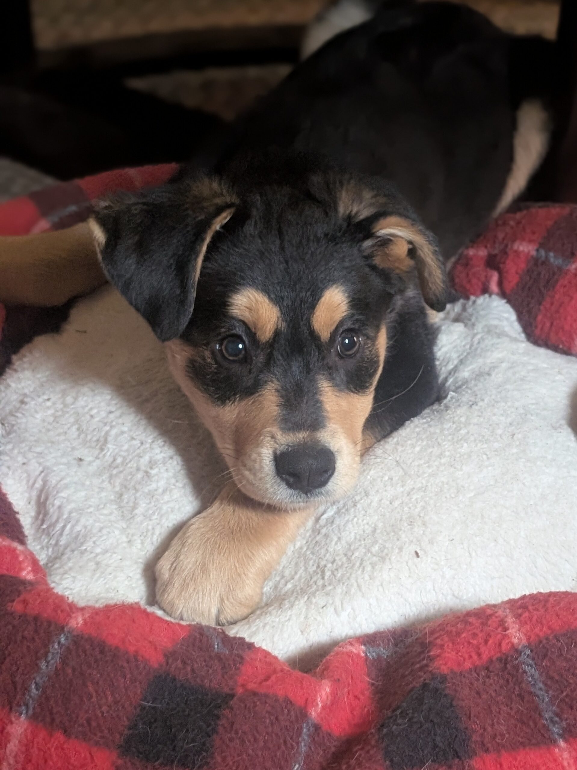 I'm currently working on crate training, and while I sometimes voice my opinion about being in my kennel (I'd rather be right by your side!), I'm a very good boy at bedtime and sleep through the night. As a puppy, I'm still mastering potty training and have the occasional indoor accident, but I'm learning more every day.
